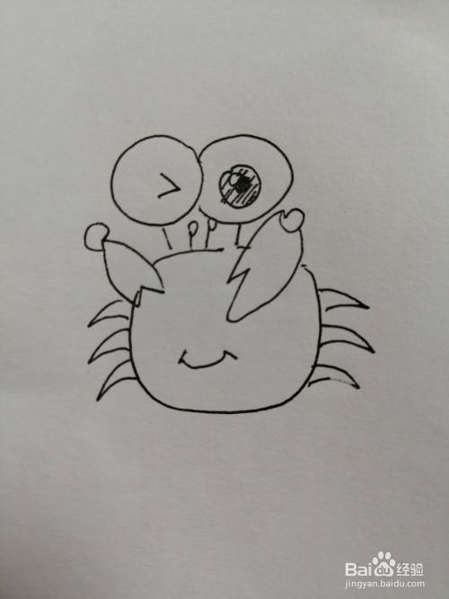 第七步,最后把可爱的小螃蟹的右边身体的几条腿画完整。可爱的小螃蟹就画好了。