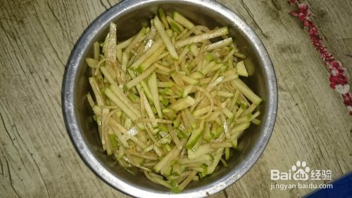 第五步将放凉的油倒进萝卜丝里,再放入切好的辣椒蒜等,最后将糖和醋生抽都倒一点在里面,所有的材料都放好后将萝卜丝多搅拌几遍,等待2个小时就可以吃了。新鲜开胃快来试一试吧。