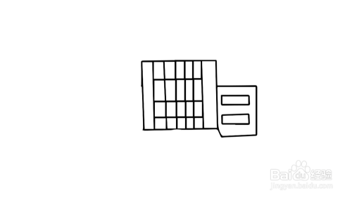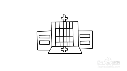 第三步画出医院大楼左边的侧楼和医院的标志。