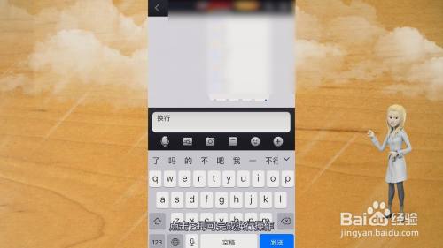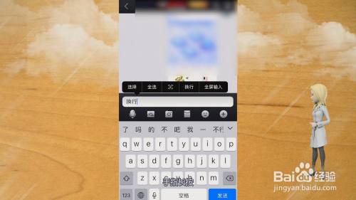 内容输入后,在需要换行的地方,手指长按,展开上拉菜单。