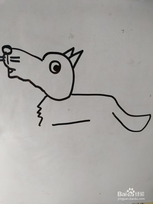在狼头部的右侧画出狼身体的轮廓。在身体轮廓到最右侧画出狼的尾巴。
