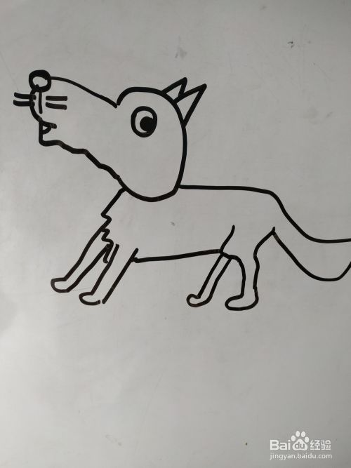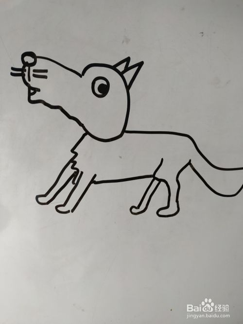 在狼身体的最下端,画出狼的四条腿。狼的简笔画就完成了。