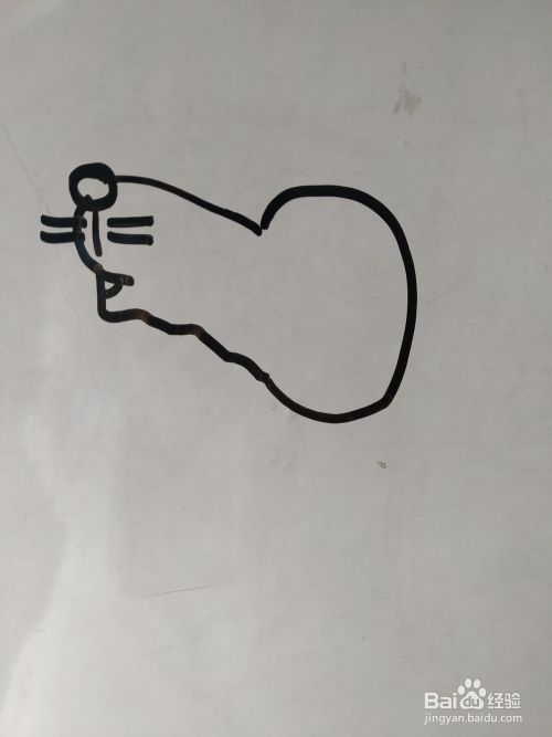 在狼鼻子的位置,画一个小椭圆。在下方画一条短竖线。