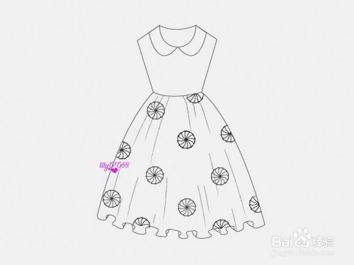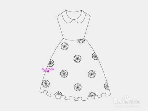 接着在裙摆的上方,给它画出很多个花朵作为点缀。