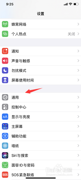 设置页面稍微往下滑动,找到通用,点击进入下个页面。