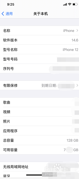 在关于本机页面,我们可以看到手机详细的配置内容,比如软件版本,型号,容量等。