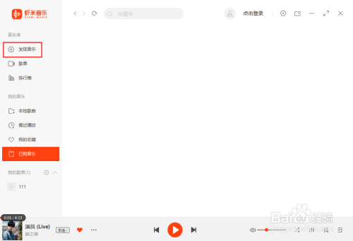1、打开【虾米音乐】在左侧列表点击【发现音乐】;