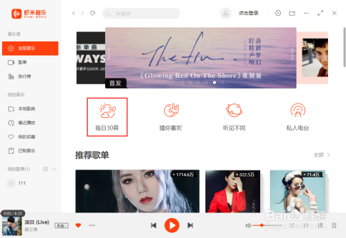 在【哨绵著发现音乐】的右侧详情页面里我们即可找到【每日30首】;