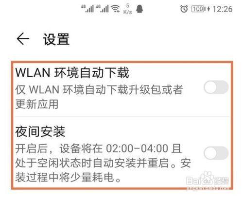 点击右上角的齿轮设置图标,关闭【WLAN环境自动下载】和【夜间安装】开关。