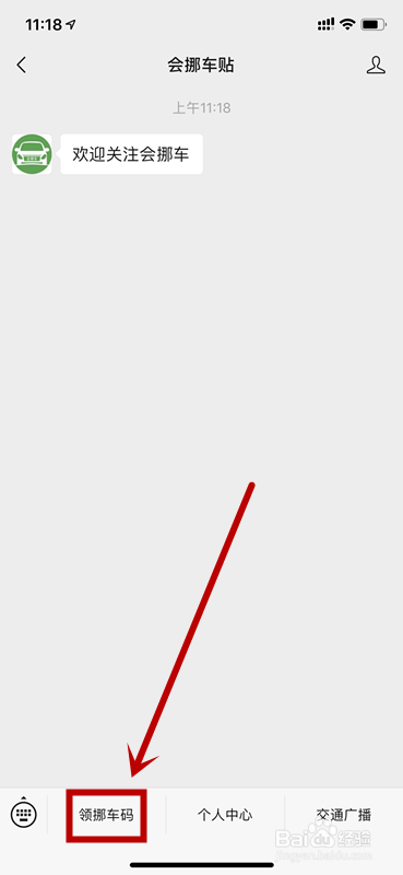 进入公从号后,找到下方领取挪车码,并点击打开