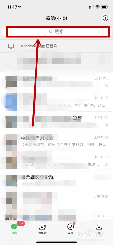 找开vx应用,在Vx顶部找到搜索栏