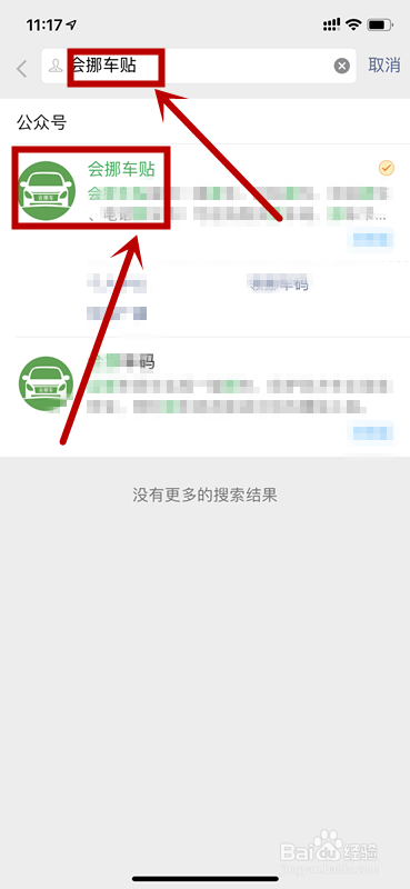 搜索出《会挪车贴》公从号,并点关注