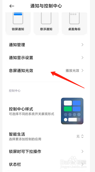 在通知与控制中心里选择息屏通知光效选项。