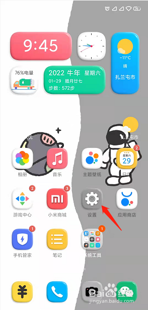 在手机操作页面选择设置。