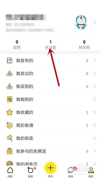 然后打开闲鱼的个人中心后可看到【关注数】,点击这个关注数。