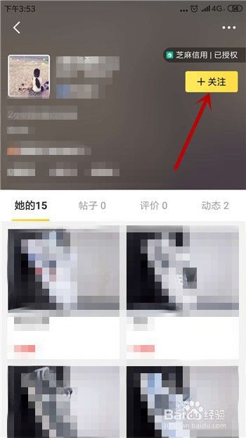 点击之后会进入到他的个人主页,在右上角找到【关注】并点击。