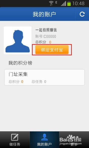首先请在手机端打开道路寻宝APP,在“我的帐户”中,完成“绑定支付宝”操作并提交;