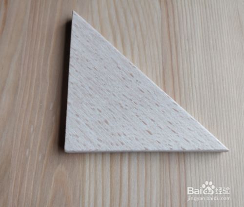绿色三角形上侧放上红色三角形,直角贴在绿色边上,有个斜度比较耐看。