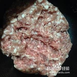 猪五花肉剁成肉泥,加入料酒腌制15分钟。