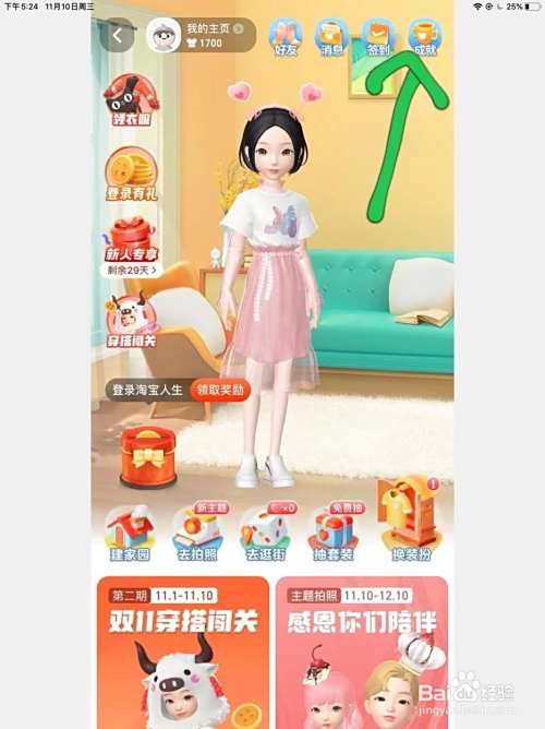 点击右上角的【成就】;