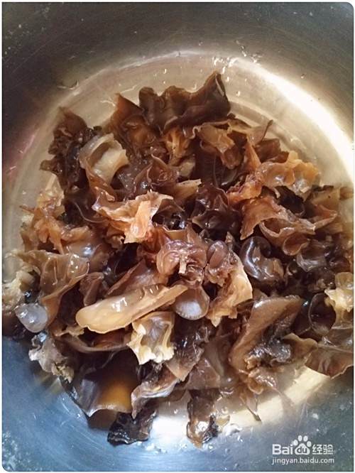 1.木耳十个,用温水来泡,半个小时以后洗干净,摘掉根。