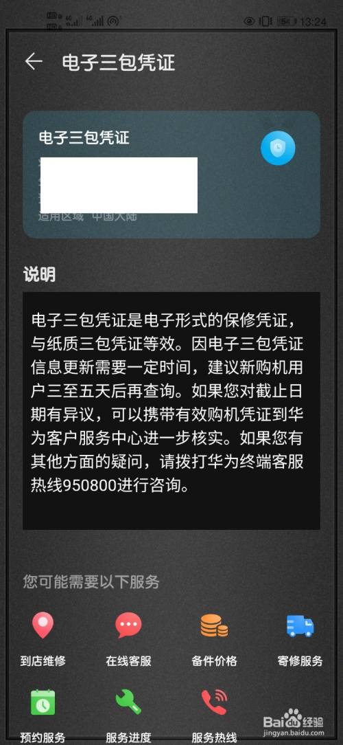 我们在使用华为手机时,有时候要到售后去维修或者保养,这时工作人员要查看手机是否在保修期内,此时查看电子三包凭证是最快的方法。那么应该如何查看电子三包凭证呢?下面给大家分享一下经验 。