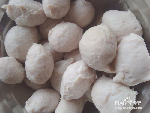 先把猪肉丸放到大碗里。