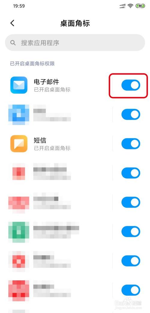 我们先查看【桌面角标】。关闭软件设置后的开关,即可关闭软件在手机桌面显示红点标志。
