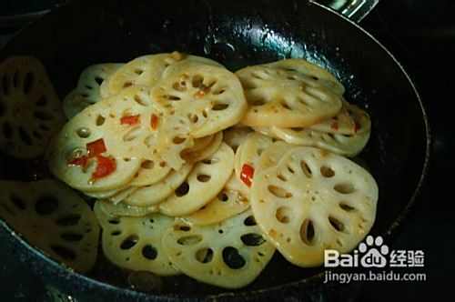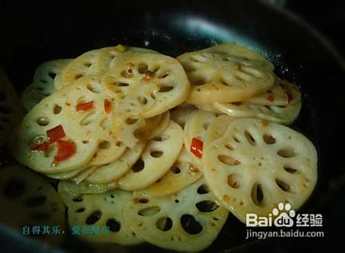 炒锅烧热,放少许油下去,然后放入藕片轻轻翻炒,翻炒的时候是不是洒一点清水进去,这样藕就不会变色