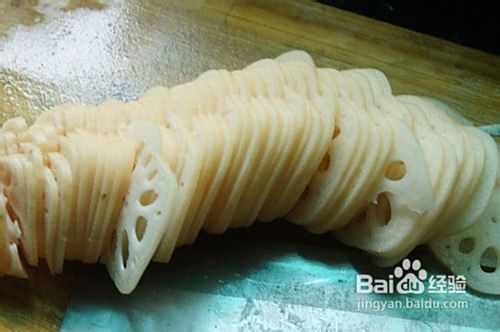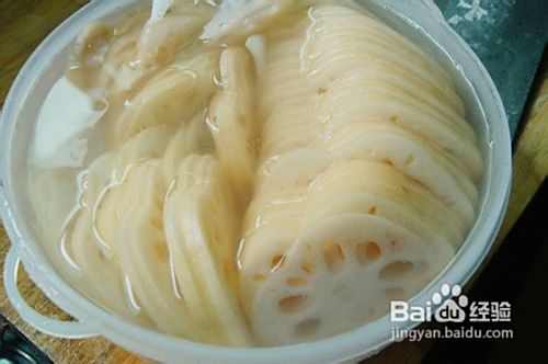 藕切好以后赶紧泡多清水里,清水里加几滴白醋防止藕氧化