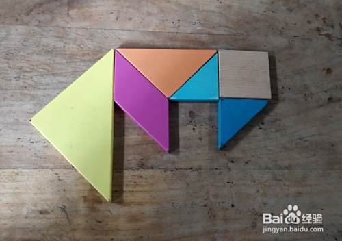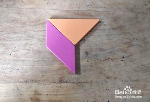摆上橙色三角形,直角向下,左下放上平行四边形挨着,如图。