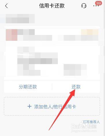 在信用卡界面点击还款。