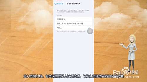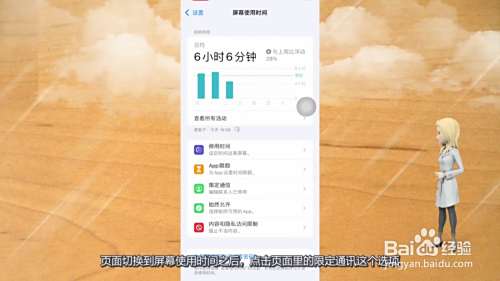 跳转到限定通讯页面之后,点击页面里的在屏幕使用时间内。