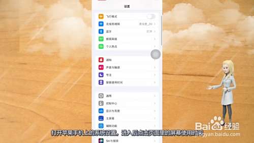 进入苹果手机上的系统设置,进入后点击页面里的屏幕使用时间。
