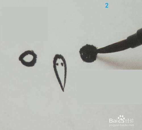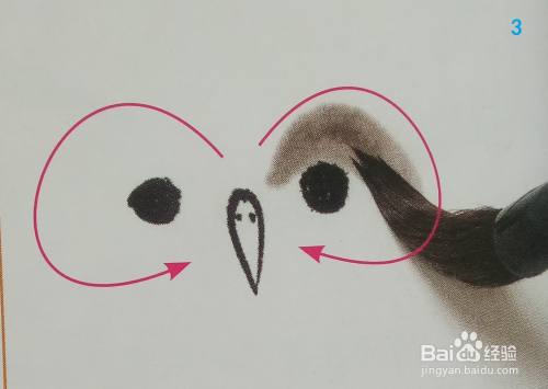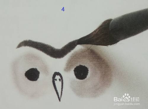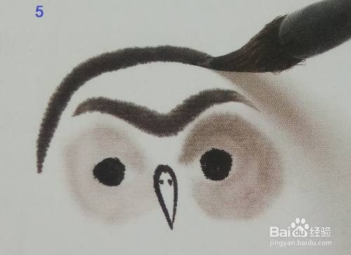 1、用小楷笔蘸取中墨,将水分吸走后绘制出猫头鹰的喙。