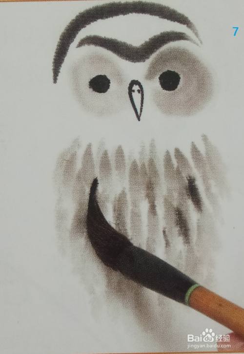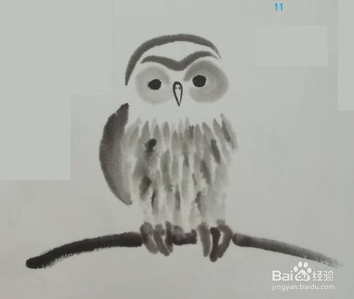 9、用浓墨绘制出爪子。因为猫头鹰属于猛禽,所有其爪子可以描绘得粗壮一些。