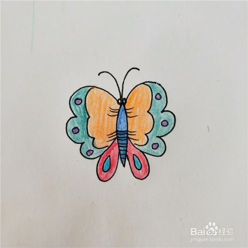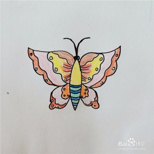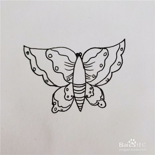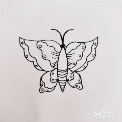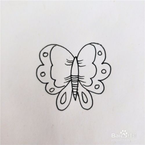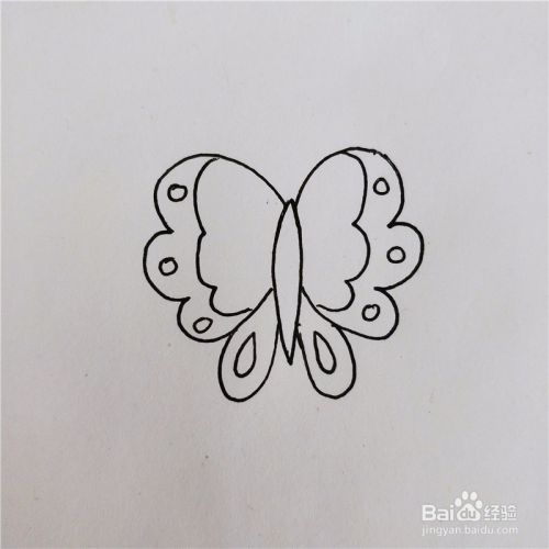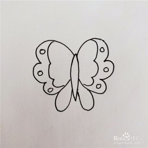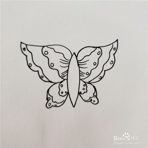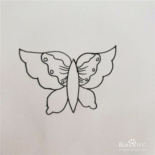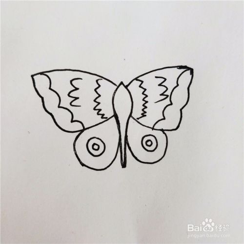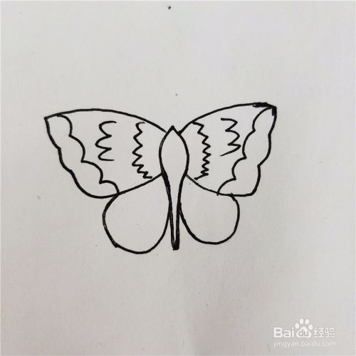 画出翅膀,尽量对称。我是徒手画的,大家可以先用铅笔画,最后再描一下。