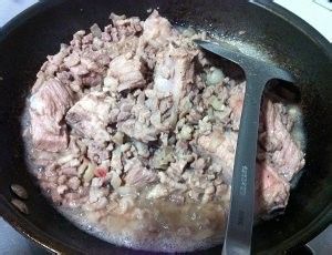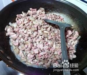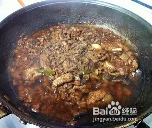 待肉都变色后关小火,不停的翻搅,肉会出很多水,继续翻炒直到水收干开始出油;