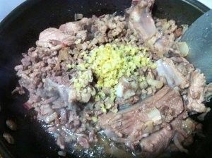 等油出了很多,倒入姜末翻炒2分钟;