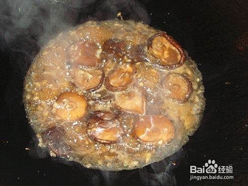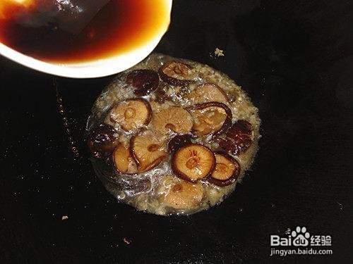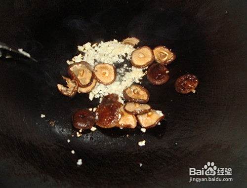 热锅下油,把蒜茸爆香后加入香菇翻炒几下。