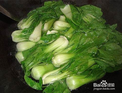 锅里加适量清水烧开,加适量的油和盐,把油菜放进去焯熟。