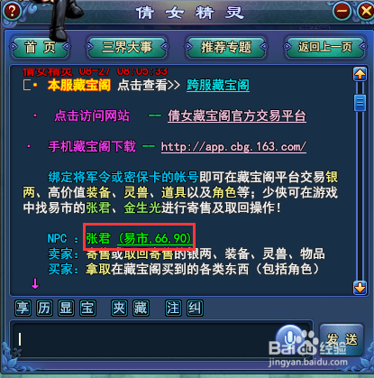 接着就是点击倩女精灵回复内容中的【NPC:张君】的坐标,如下图所示。