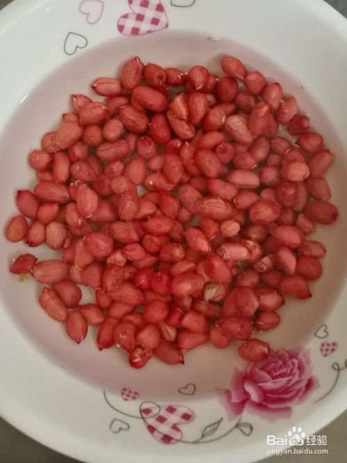 将花生剥好,放入碗里。这里选用的是红心花生,比较补血