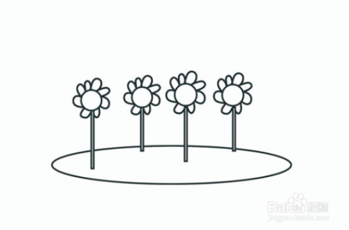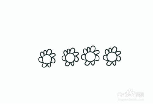 接着在圆圈的基础上,用简单的曲线画出花朵;