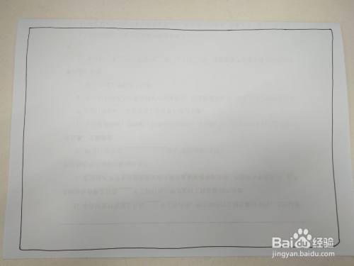 在手抄报矩形边框的右上方绘制曲线文本框,框内绘制间距均等的横线。