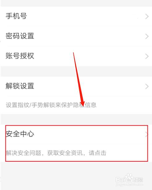 我们进入到“安全设置”之后,我们在手机显示的页面上我们可以看到有一个“安全中心”的选项,然后我们点击进入。