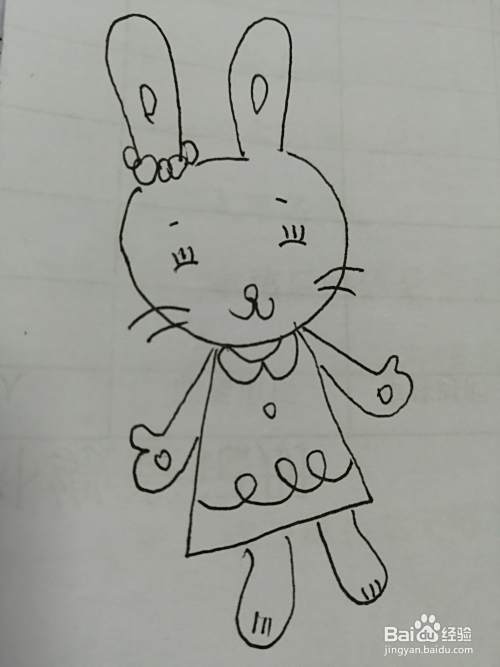 第五步,接着继续画出漂亮的小白兔的蝴蝶结和漂亮裙子。