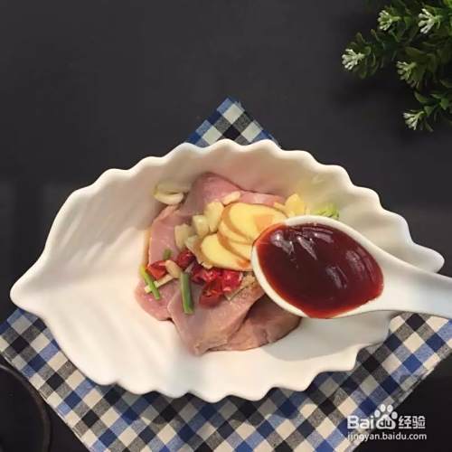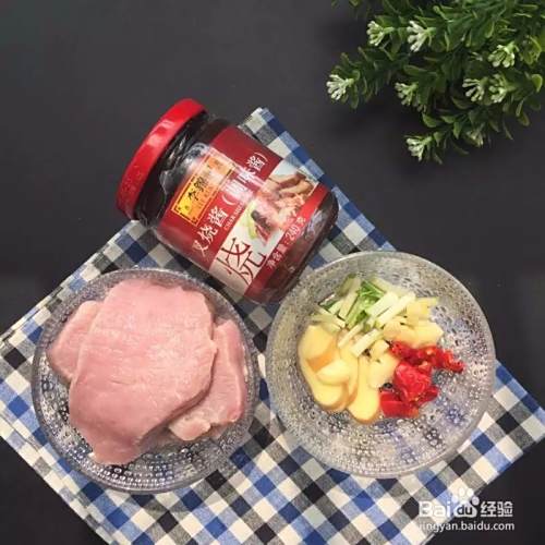 用料准备里脊肉350g、叉烧酱、葱、姜、蒜、辣椒段。