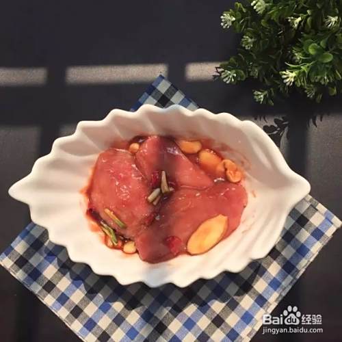 里脊肉切大约1.5厘米的厚度多用清水浸泡中途换去血水,用牙签在里脊肉上多扎些孔,方便腌制入味。
