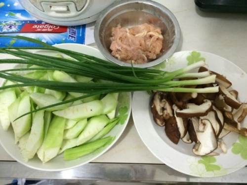 4将香菇切片,角瓜切滚刀状,葱洗净备用。